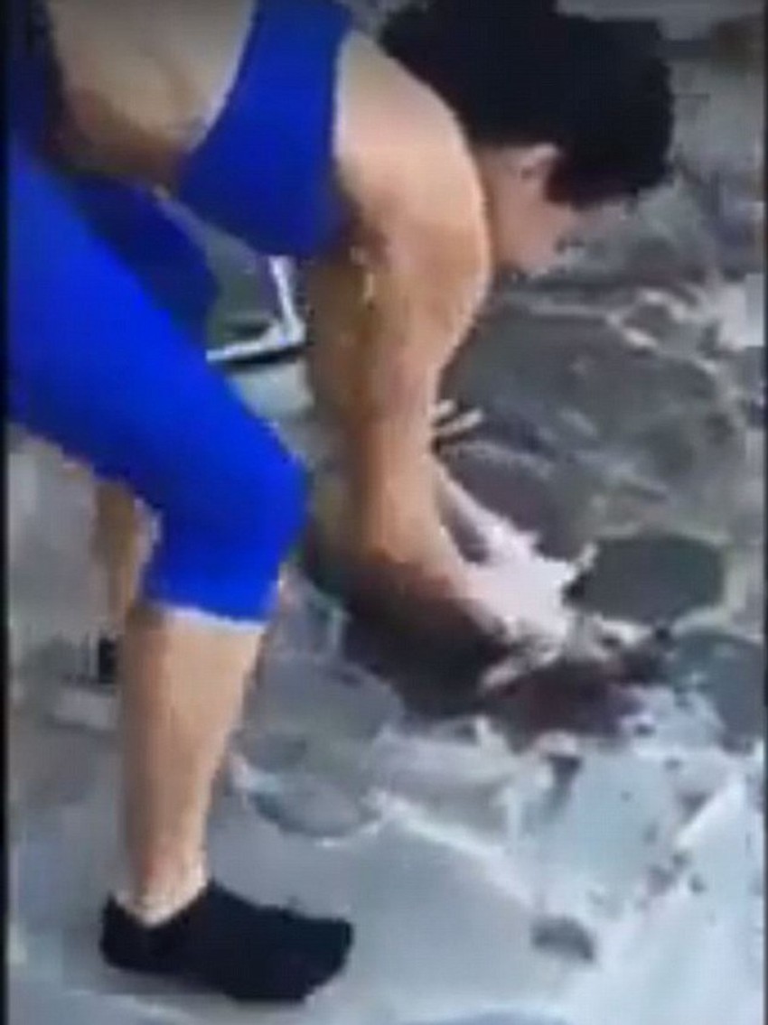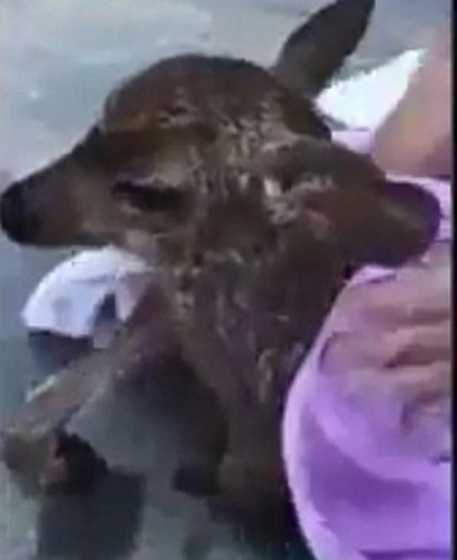 U kratkom video-klipu, vidi se kako žena daje veštačko disanje malenom lanetu i pritiska mu grudi ispumpavajući vodu iz pluća. Srećom po životinju, upala je u bazen lekarke koja je odlično znala šta radi.