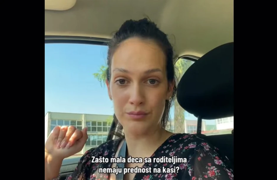 "Može li neko da mi objasni o čemu tačno razmišljaju ljudi koji vas vide na kasi sa malim detetom kako imate dve stvari u ruci, a oni ispred vas imaju puna kolica", počela je svoj video Žaklina Vilotić.