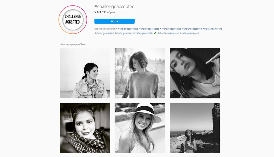 Ukoliko ste u poslednje vreme makar i na kratko skrolovali po instagramu, verovatno ste primetili fotografije žena, obrađene pomoću "crno-belog" filtera uz hašteg "challengeaccepted" ili "izazovprihvaćen".