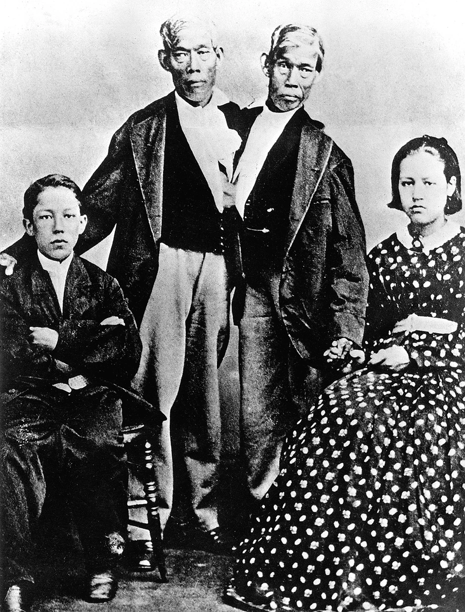 Čang i Eng, su bili spojeni cevastim tkivom dužine oko 8 cm i oko 3,8 cm u prečniku. Majka im je bila polu Kineskinja, a otac Kinez. Njihova anatomska posebnost učinila je da još kao deca postanu popularni, a čak su imali i audijenciju kod kralja Sijama. Godine 1829. Čang i Eng su, bili "unajmljeni" od strane britanskog trgovca. Napustili su Sijam, i tokom naredne decenije putovali po istoku Sjedinjenih Država i Kanadi, Kubi i Evropi.