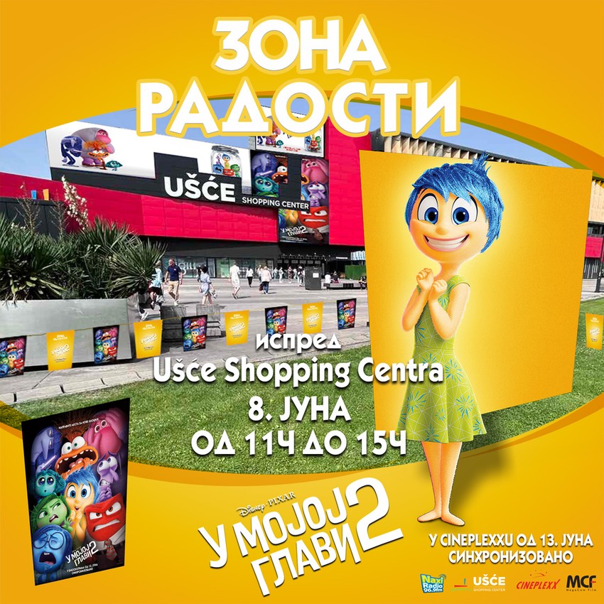 Ostalo je još svega nedelju dana do početka prikazivanja najnovijeg Diznijevog animiranog filma „U mojoj galvi 2”, a pred bioskopski start dugonajavljivane avanture u subotu, 8. juna odžaće se četvoročasovna zabavna manifestacija “Zona radosti”.