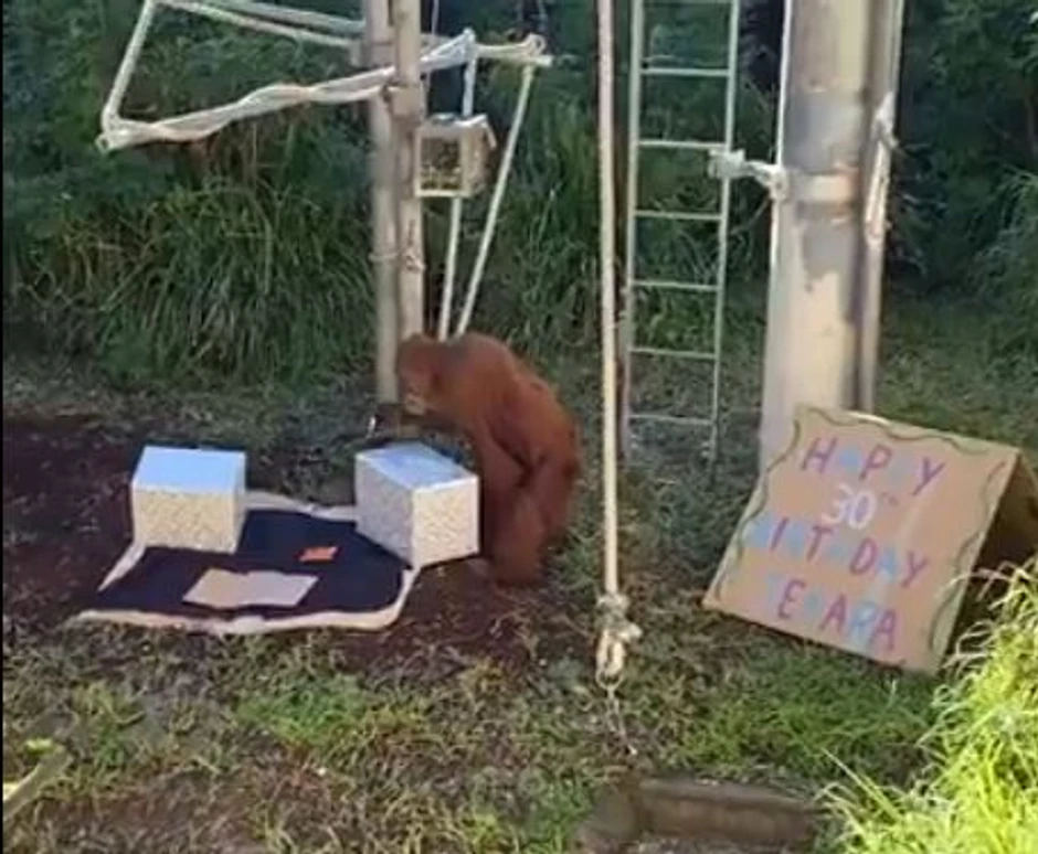 Velika zakuska priređena je u zoo-vrtu u Pertu u delu sa orangutanima. Povod je bio veliki jubilej Sekare, stanovnice vrta koja slavi 30. rođendan.
