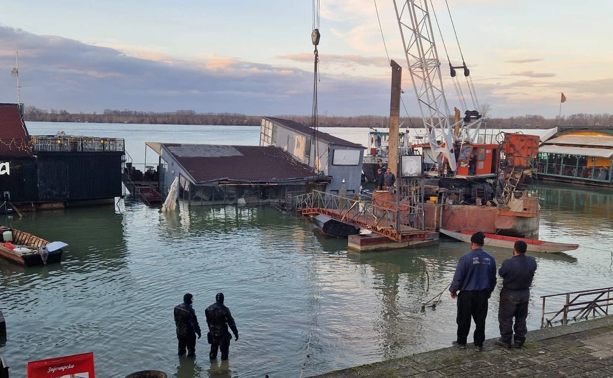 3 kom. POTONUO JOŠ JEDAN SPLAV Na licu mesta ronioci, dižu ga i uz pomoć krana: Skoro je ceo u vodi, mostić prepolovljen (FOTO, VIDEO)