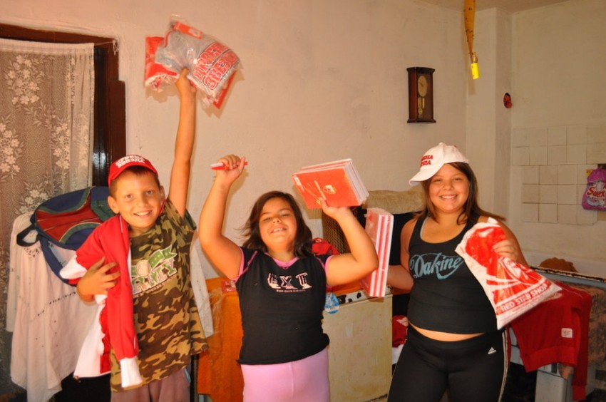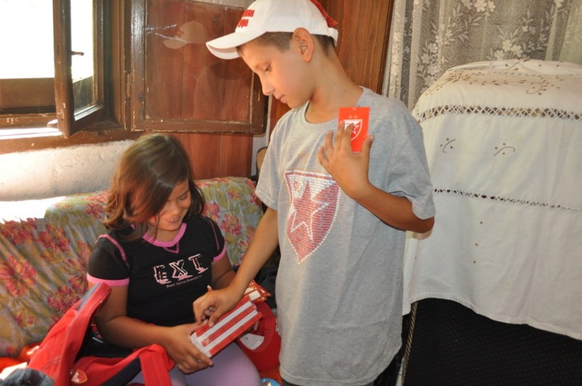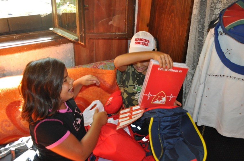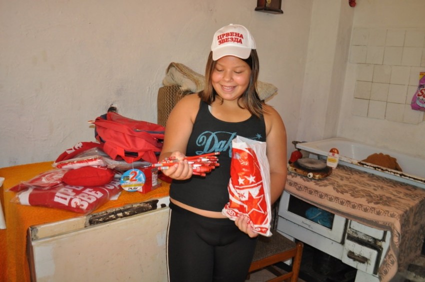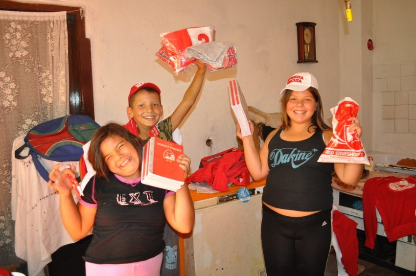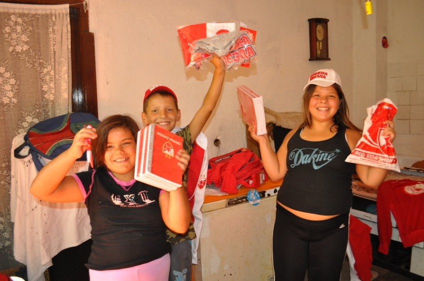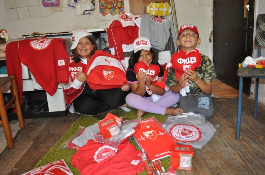 Od agencije "Sportnetwork" iz Beograda, troje mališana dobilo je garderobu, školski pribor, sveske, rančeve, šolje, kačkete, a najveće oduševljenje usledilo je kada su Đorđevići ugledali da su svi pokloni sa oznakom FK „Crvena zvezda“.