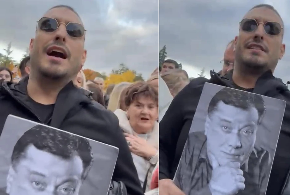 Darko Lazić je sa Halidovom fotografijom u rukama zajedno sa ostalima pevao Bešlićeve pesme.