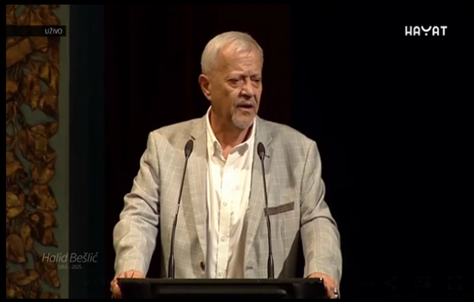 Na komemoraciji Halidu Bešliću govorio je i glumac Emir Hadžihafizbegović koji se potresnim rečima oprostio od svog dugogodišnjeg prijatelja.
