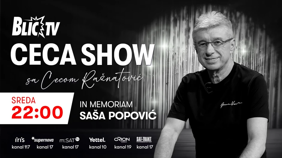 Ne propustite priliku da se zajedno podsetimo velikog vizionara i jednog od najuticajnijih ljudi u svetu zabave. Večeras u 22 časa na "Blic" TV-u, uživajte u specijalnom emitovanju posvećenom Saši Popoviću, u okviru emisije "Ceca Show".