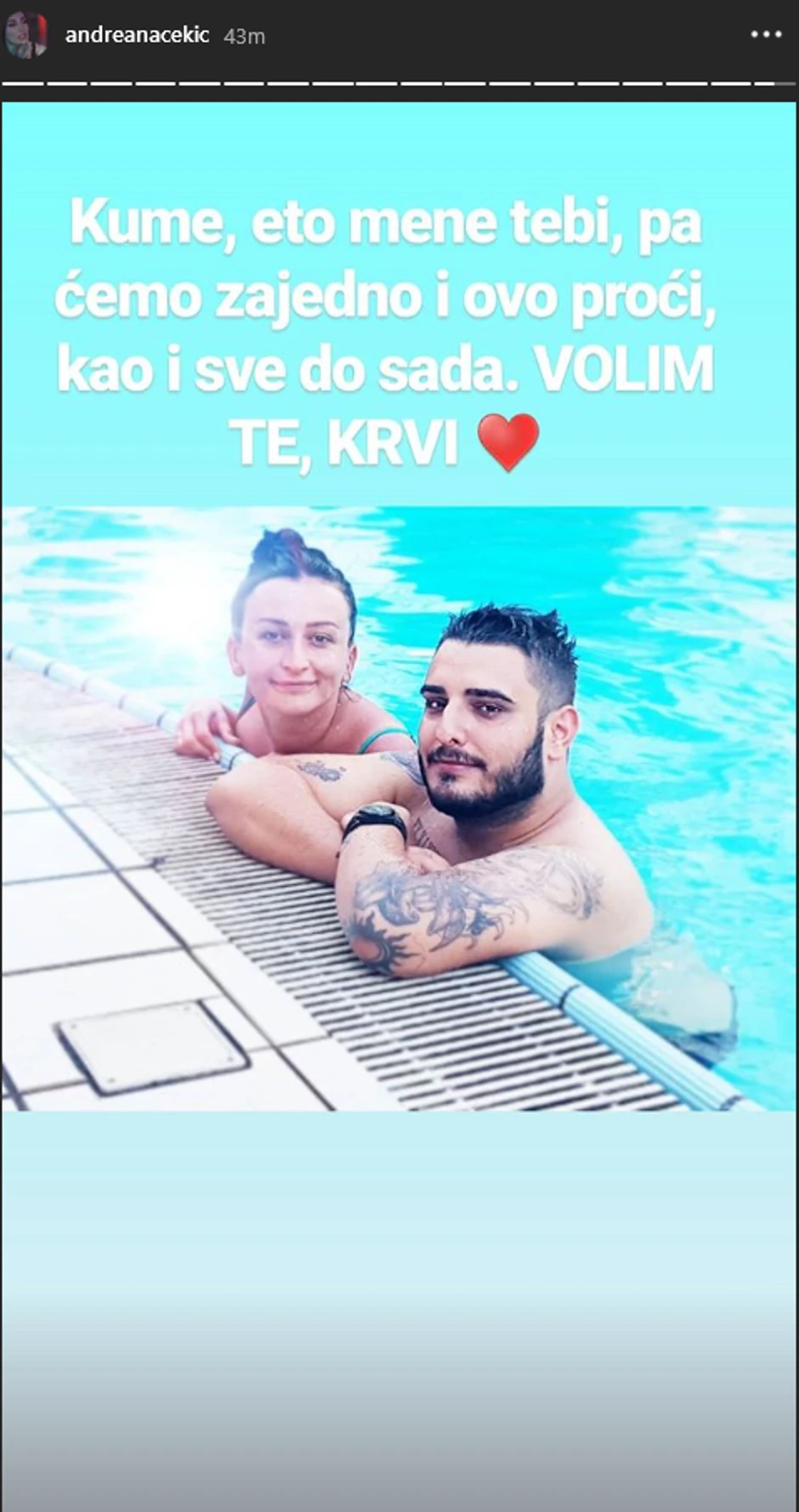- Kume, eto mene tebi, pa ćemo zajedno i ovo proći kao i sve do sada. Volim te, krvi - napisala je pevačica.