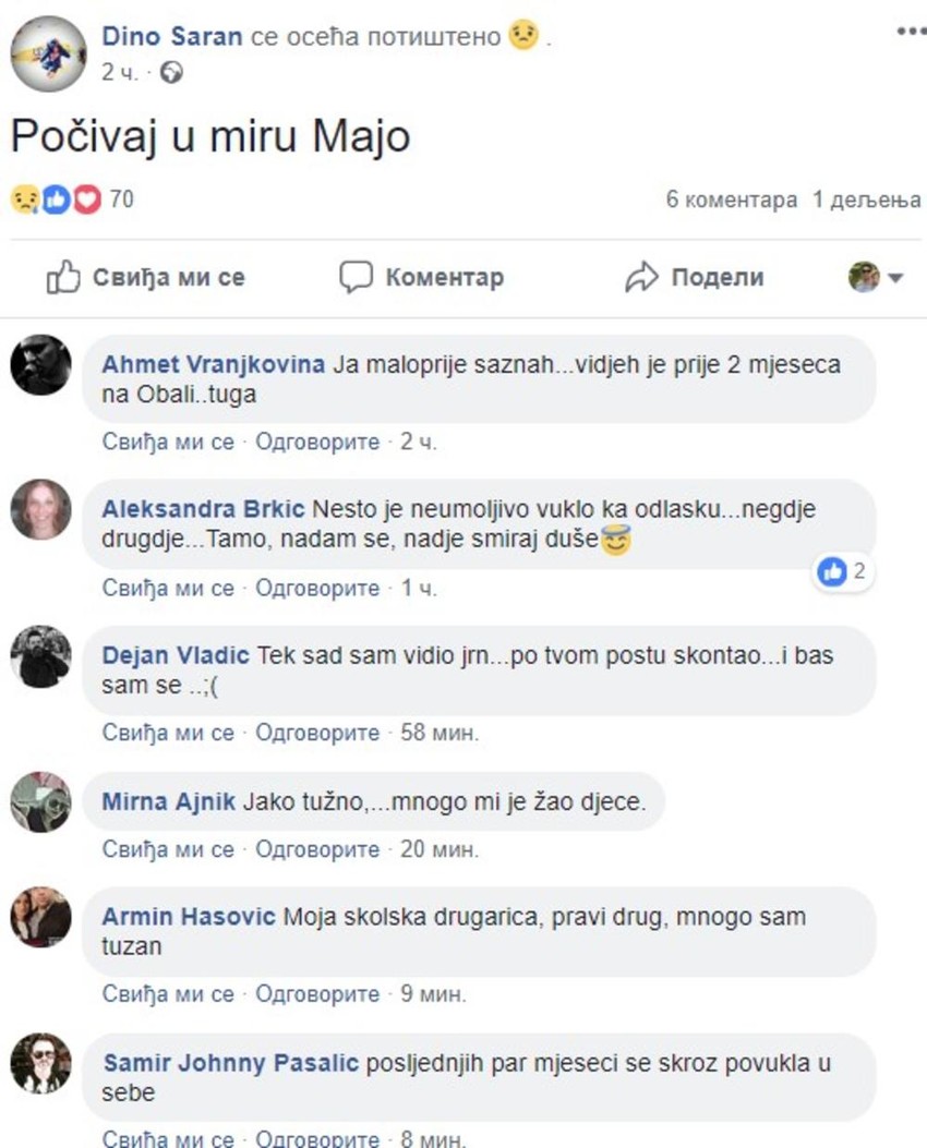 "Nešto je neumoljivo vuklo ka odlasku... negde drugde. Tamo nadam se nađe smiraj duše", "Počivaj u miru, Majo", "Poslednjih par meseci se povukla u sebe", "Moja školska drugarica, pravi drug, mnogo sam tužan", samo su neki od komentara posle Majine smrti.
