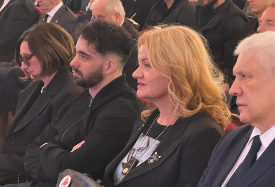 Na komemoraciji Dušku Vujoševiću danas su došli mnogi ugledni ljudi iz sveta sporta, a nakon što su u salu ušli njegova supruga i sin, u prvim redovima pored njih sela je i njegova sestra Nataša.