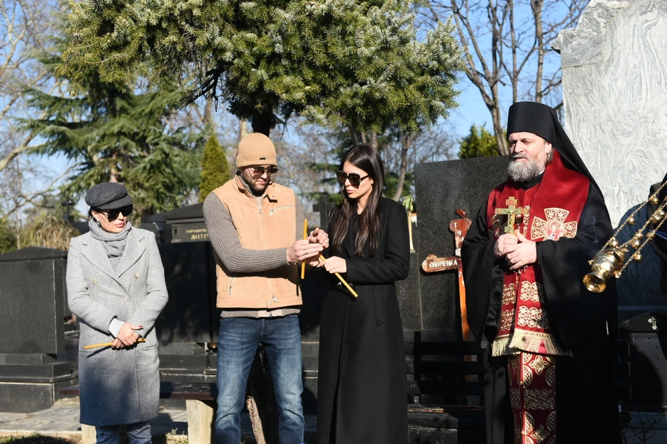 Svetlana Ceca Ražnatović, sin Veljko, ćerka Anastasija, došli su na groblje i položili venac od belih ruža.