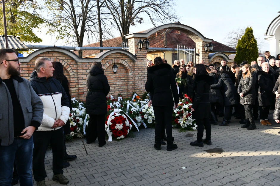 Vidno skrhana sa crnom maramom na glavi, Palmina udovica Snežana, primala je saučešće zajedno sa sinovima u seoskoj crkvi.