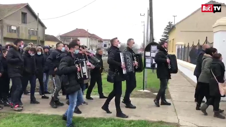 Rodbina, prijatelji, komšije svi koji su voleli oca Darka Lazića krenuli su u pratnji harmonike ka groblju da se poslednji put oproste od njega.