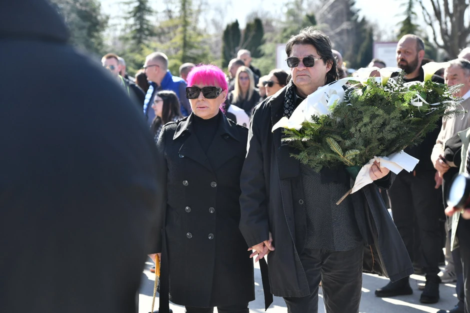 Pevačica Zorica Brunclik došla je zajednom sa Miroljubom Aranđelovićem Kemišom, koji je doneo na groblje venac od belih cvetova.