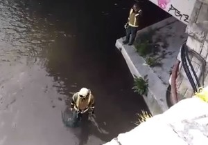 0 kom. Neobična intervencija: Devojci ispala tašna u Miljacku, vatrogasci su se spustili niz strmi nasip i pretražili reku (VIDEO)
