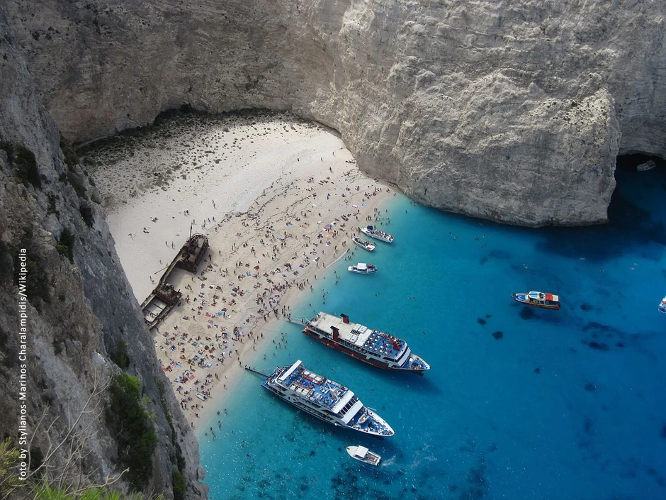 Njegov ukras je fascinantna plaža Navagio s tepihom od belih kamenčića. Jedini put do nje je – morem.