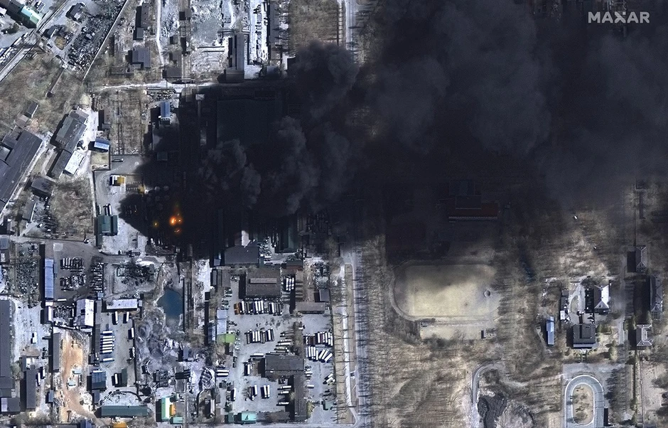 Gusti crni dim i oštećene zgrade vidljivi su na brojnim satelitskim slikama snimljenim iznad Ukrajine.