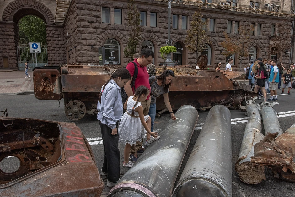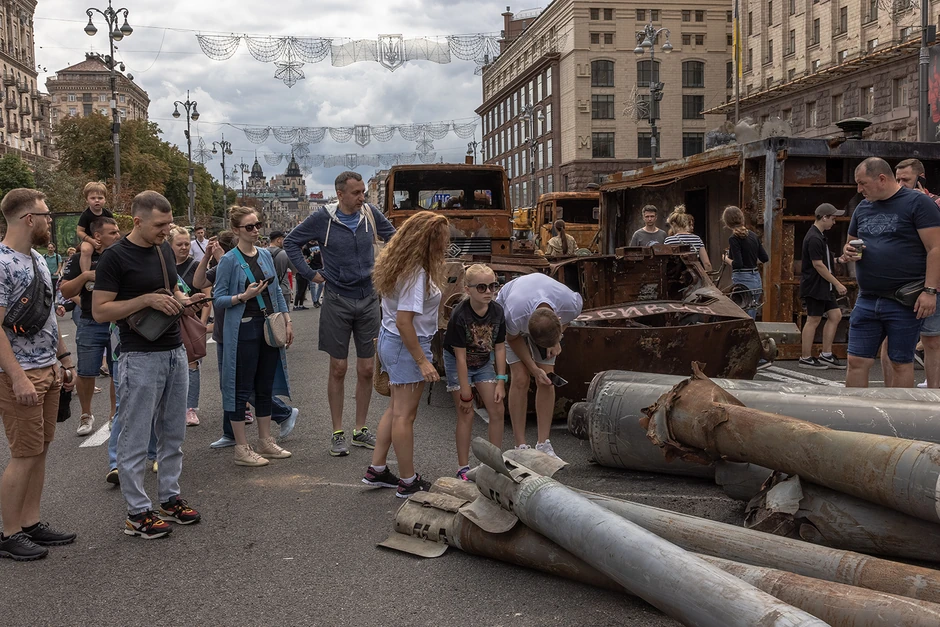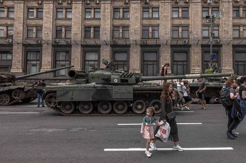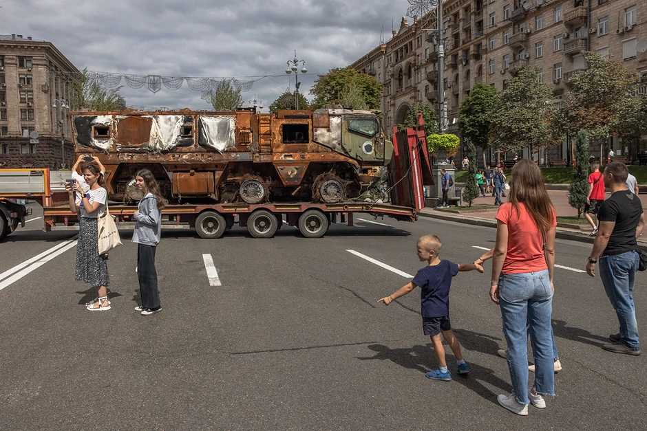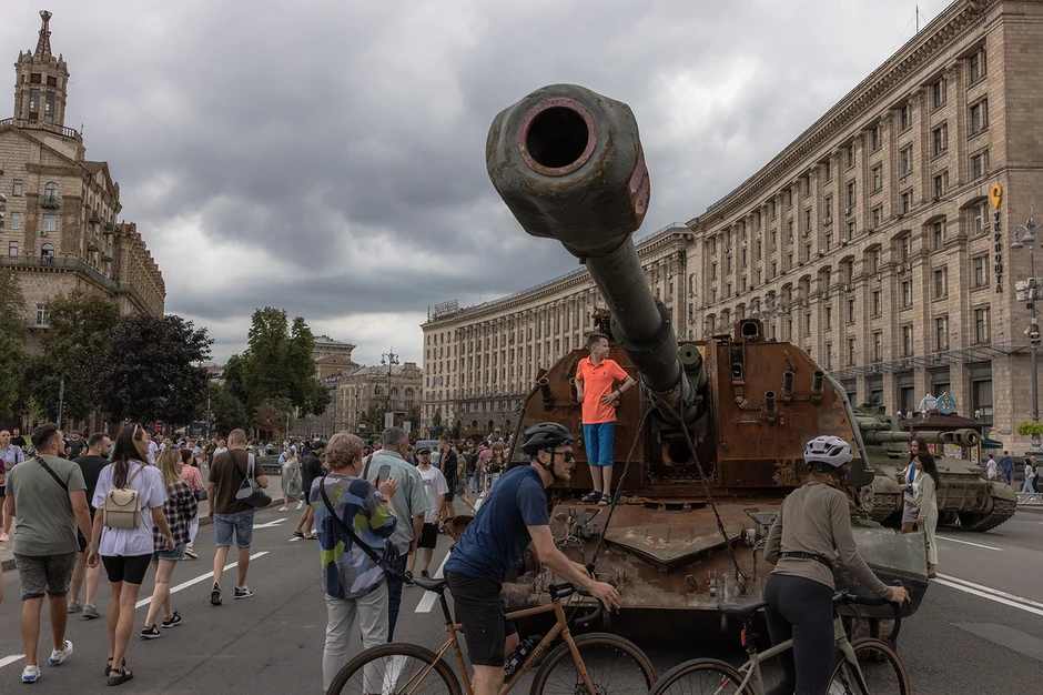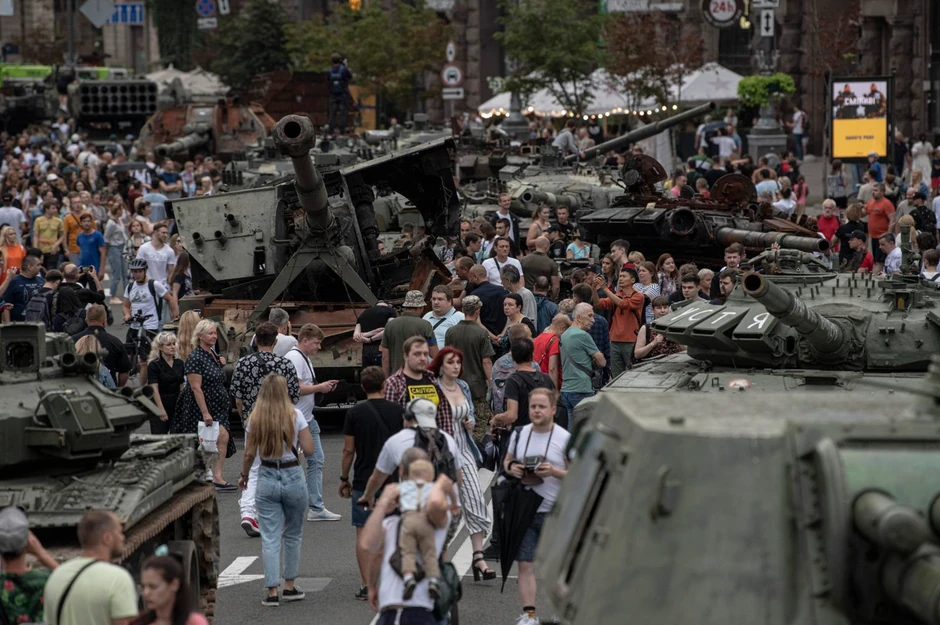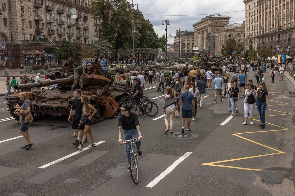 Umesto toga, kako bi proslavile Dan nezavisnosti 24. avgusta, ukrajinske vlasti prikazale su desetine izgorelih, zaplenjenih ruskih tenkova i vojnih vozila u dve duge linije u glavnoj ulici Kijeva, Bulevaru Kreščatik.