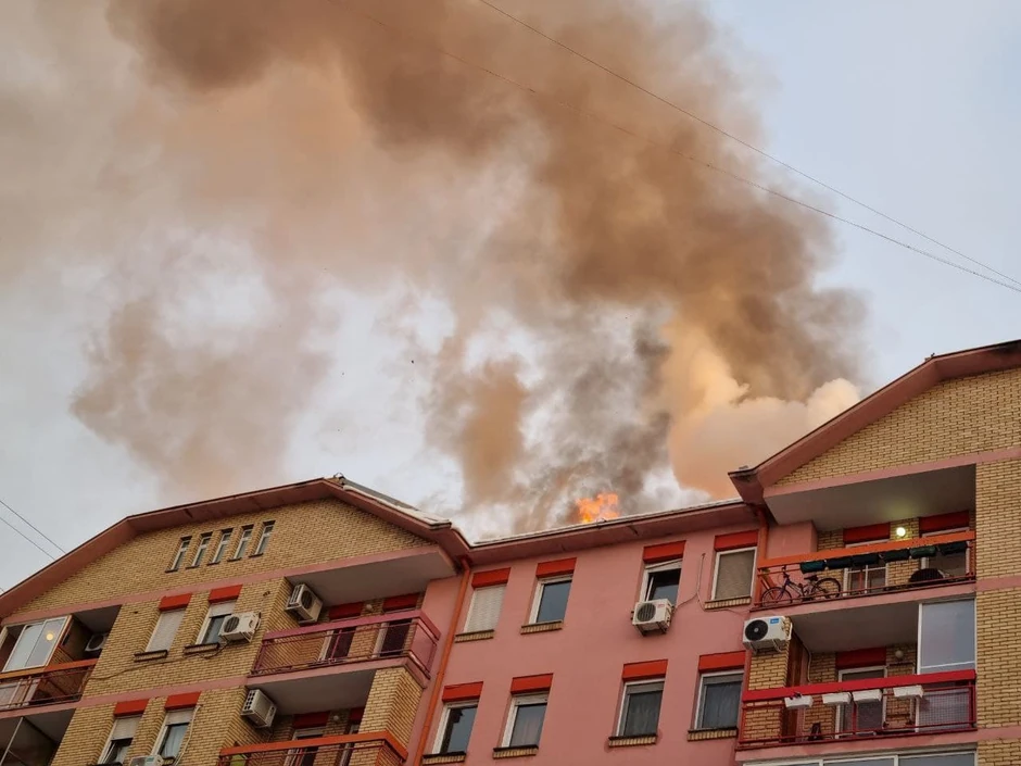 Veliki požar izbio je oko 15 sati u stambenoj zgradi na Limanu 4 u Ulici Jožera Marčoka u Novom Sadu, i kako se vidi na snimcima, plamen guta krov zgrade i vidi se iz velike daljine.