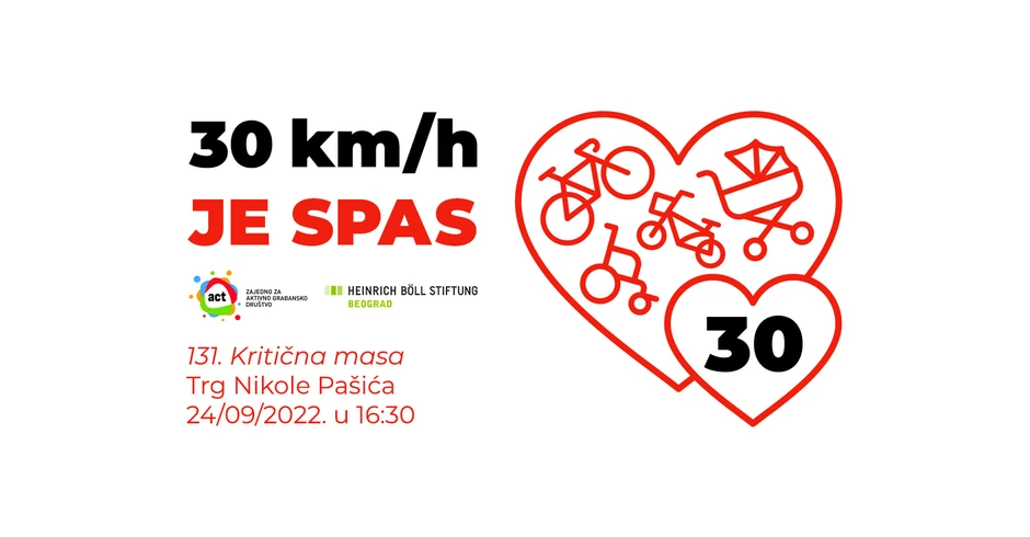 Ovaj put, biciklisti Beograda se priključuju obeležavanju Evropske nedelje mobilnosti, sa porukom da je ograničenje brzine vozila od 30kmh spas za sve, za pešake, osobe sa invaliditetom, trotinetaše i bicikliste. Naime, pri toj brzini se šanse da pešak i biciklista prežive sudar povećavaju više puta, što i subjektivno a i objektivno utiče na percepciju bezbednosti u saobraćaju.