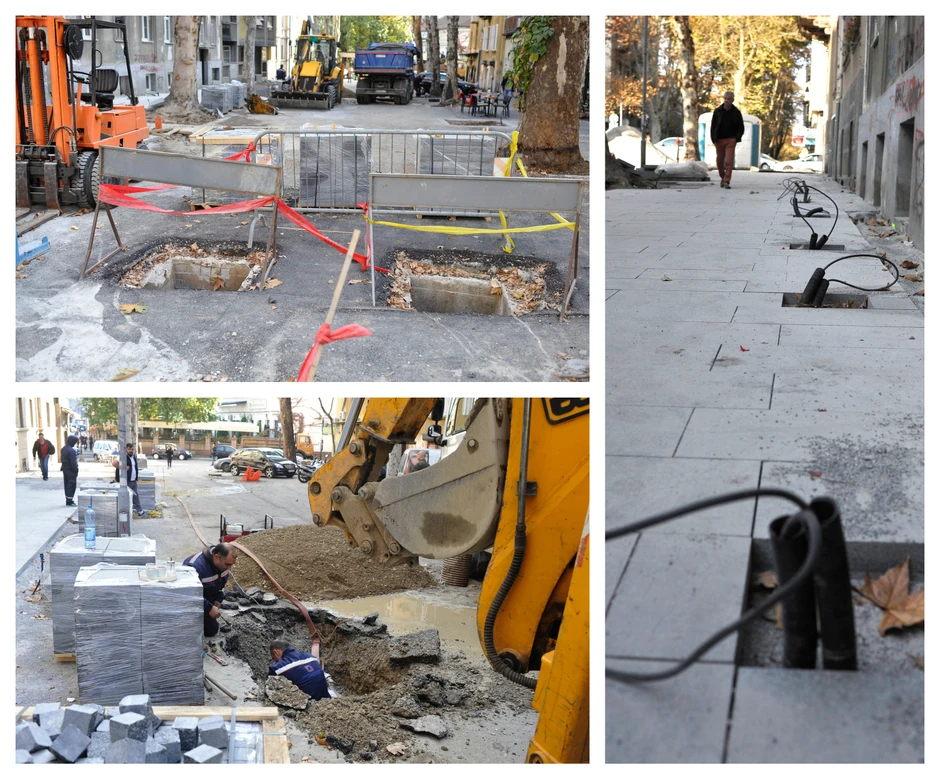 Po rečima radnika, non-stop nailaze na nove probleme. Poslednji u nizu bio je sa vodovodnim i kanalizacionim cevima koje se nalaze ispod 20 centimetara presovanog betona. Popločavanje pešačkog dela ulice sa novim sivim mermerom je započeto pre desetak dana, ali je izgleda obustavljeno na neodređeno vreme zbog gorepomenutog razloga.