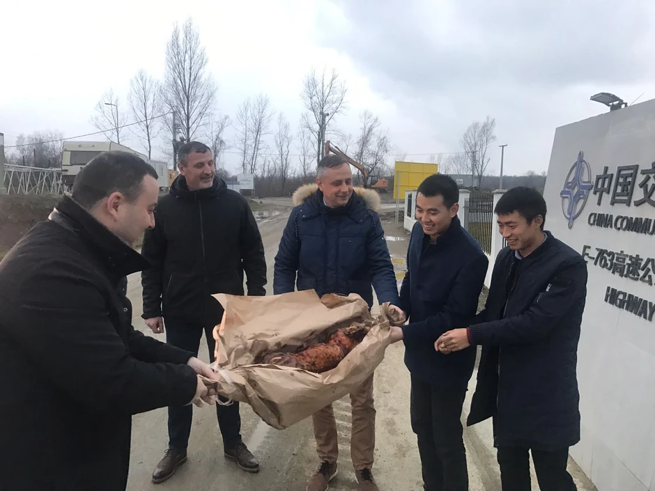 Budući da novi most na ovoj lokaciji gradi kineska kompanija, Čučković je rešio da kao radnike počasti svinjskim pečenjem.