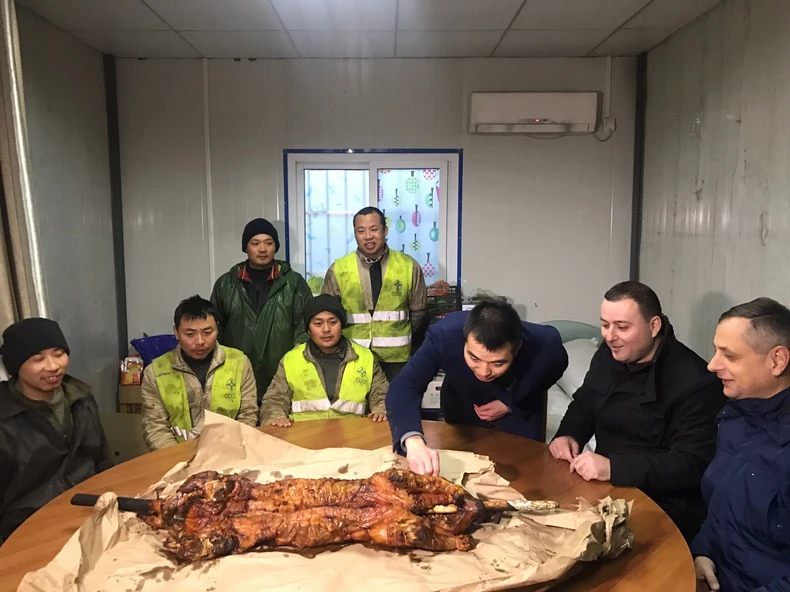 Predsednik opštine Obrenovac Miroslav Čučković posetio je danas radnike na gradilištu mosta preko Save i Kolubare i čestitao im Kinesku novu godinu uz, ni manje ni više - prase na ražnju!