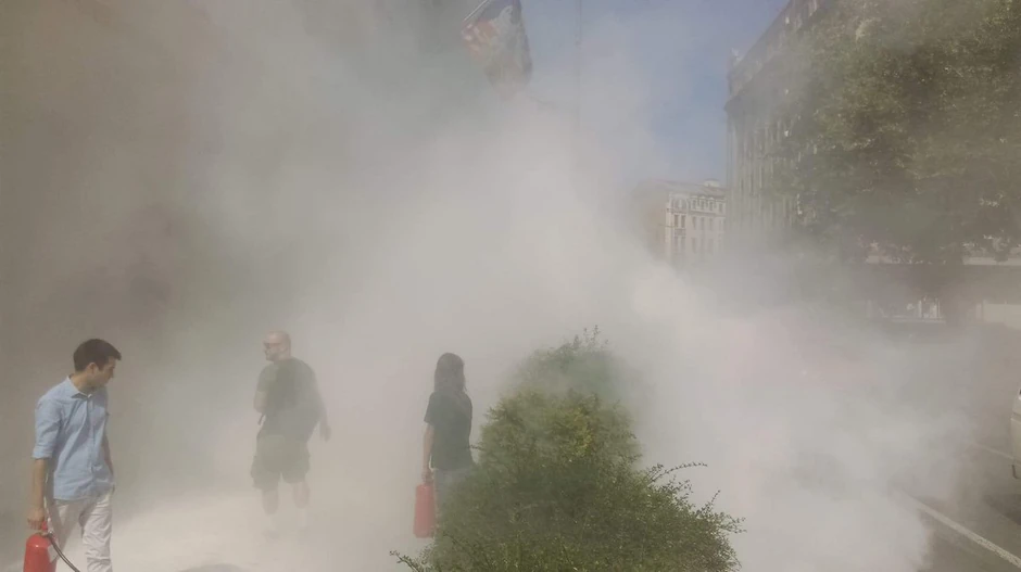 Ispred ulaza u gradski parlament aktivirano je nekoliko vatrogasnih aparata uz poruku "gasimo požare koje proizvodi gradska vlast".