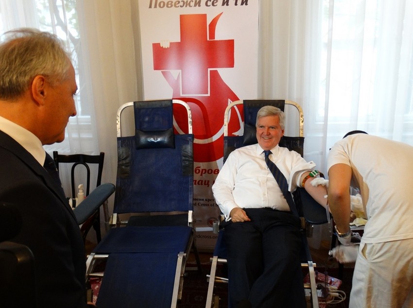 Ambasador Skot je rekao da se već osam godina u znak sećanja na žrtve terorističkih akata u SAD, u Beogradu organizuju akcije dobrovoljnog davanja krvi na dan kada, kako je rekao, narod Amerika u isto vreme i plače i peva.