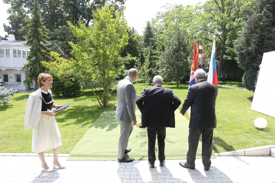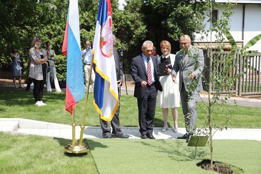 Kako je naveo, bila mu je čast i zadovoljstvo da posadi brezu uoči Dana Rusije, koji se obeležava 12. juna, te da će ovo drvo biti ne samo simbol saradnje, nego i simbol Rusije.