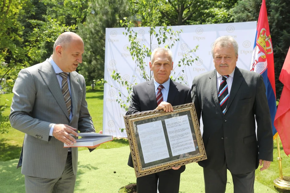 Tim povodom su u dvorištu upravne zgrade posadili drvo breze ambasador Ruske Federacije u Republici Srbiji, njegova ekselencija Aleksandar Bocan Harčenko, trgovinski predstavnik Ruske Federacije Andrej Hripunov i direktor "Diposa" Đoko Krivokapić.