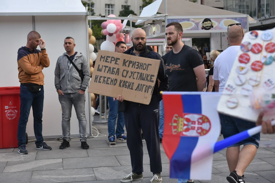 Predsednik Dveri Boško Obradović rekao je, pozdravajući skup antiglobalista, da je Кrizni štab za suzbijanje pandemije izazvane koronom potpuno izgubio poverenje struke i javnosti jer je do sad samo donosio kontradiktorne odluke, a sami ih nisu poštovali.