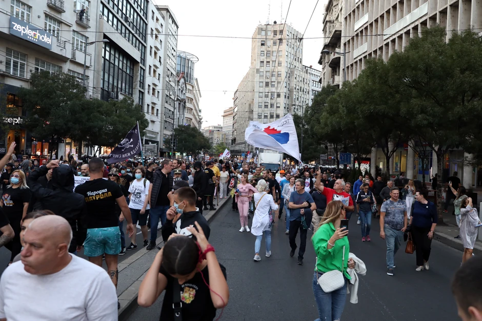 Uporedo sa Paradom ponosa oko 17.30 sati u Beogradu je počela protestna šetnja koju su organizovali protivnici vakcina i vakcinacije protiv korona virusa.