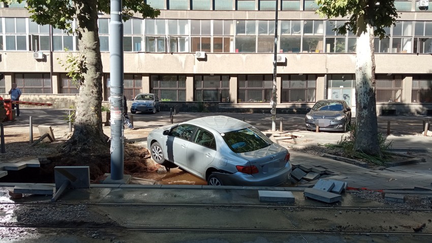 Najdramatičnija situacija bila je svakako u Ulici kraljice Marije gde se na snimcima koji kruže internetom vide potopljena vozila i jedan automobil koji je propao kroz ispucali asfalt, dok je šteta prilčinjena i na parking mestima.