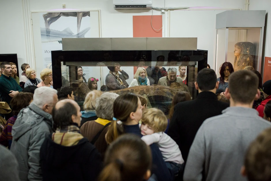 Ulaz u odeljenje arheološke zbirke Filozofskog fakulteta bio je blokiran danas oko podneva, kada su se brojni posetioci uputili u posetu najimpozantnijem, vekovima starom, arheološkom eksponatu u glavnom gradu - "beogradskoj mumiji".