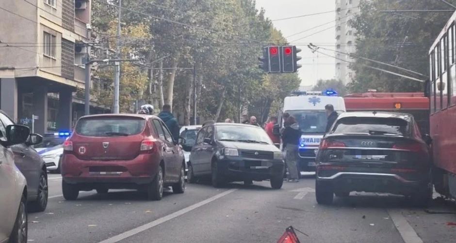 Još nije poznato kako je do nesreće došlo, ali kako se vidi na fotografiji, jedan automobil marke "audi" naslonjen je na tramvaj, dok je drugi preprečio obe trake.