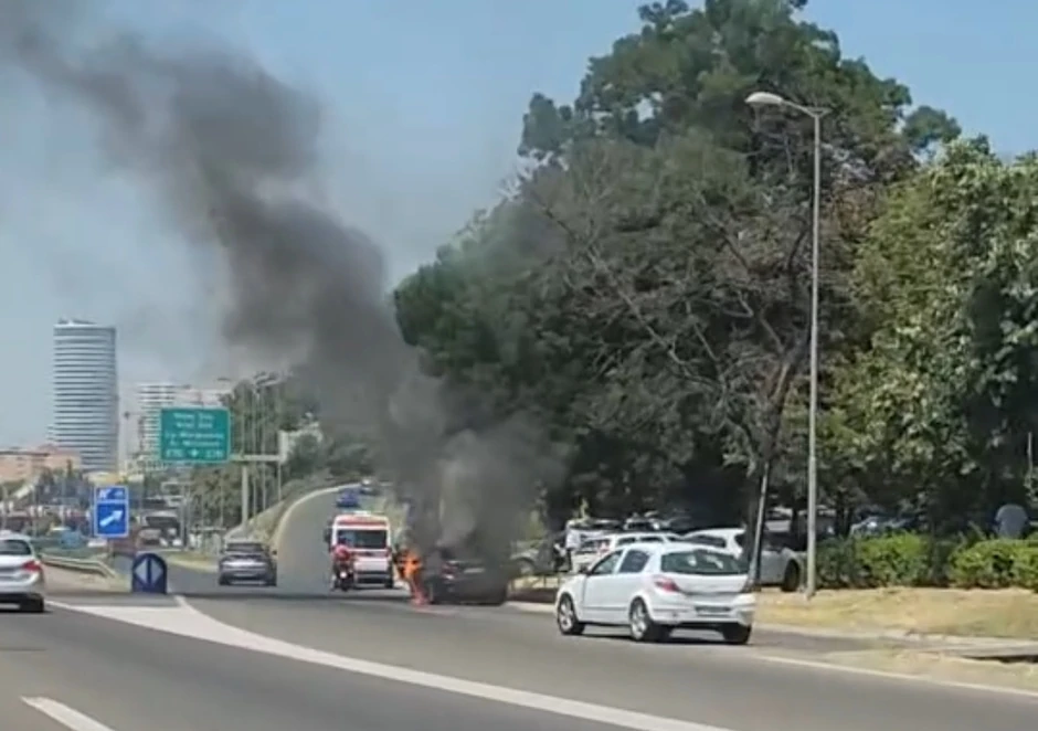 Kako se vidi na snimcima koji su objavljeni na društvenim mrežama, vozilo je kod isključenja za Autokomandu zahvatio plamen, a crni gusti dim je kuljao.