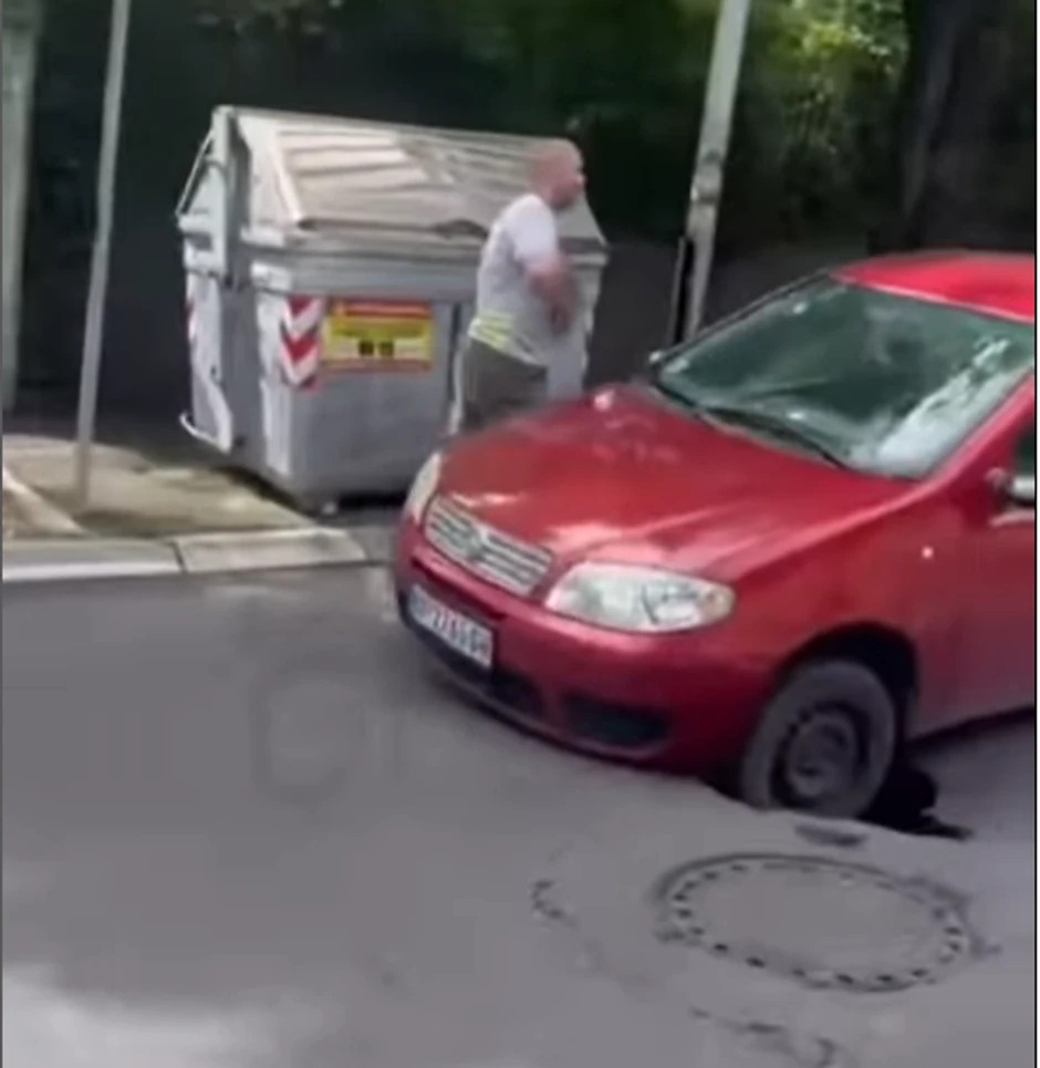 Kako se vidi na snimku objavljenom na društvenim mrežama, prednji levi točak automobila marke "fijat" upao je u krater.