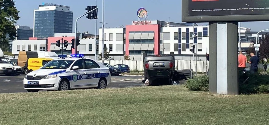 Na Novom Beogradu je jutros došlo do saobraćajne nesreće kada se automobil prevrnuo na krov.