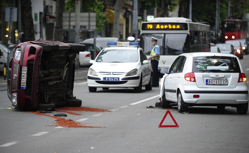 Prema rečima očevidaca, vozač crvenog "punta" kretao se ka Kalemegdanu kada je iznenada prešao u suprotnu traku, udario bočno u automobil "hjundai", a potom se prevrnuo.