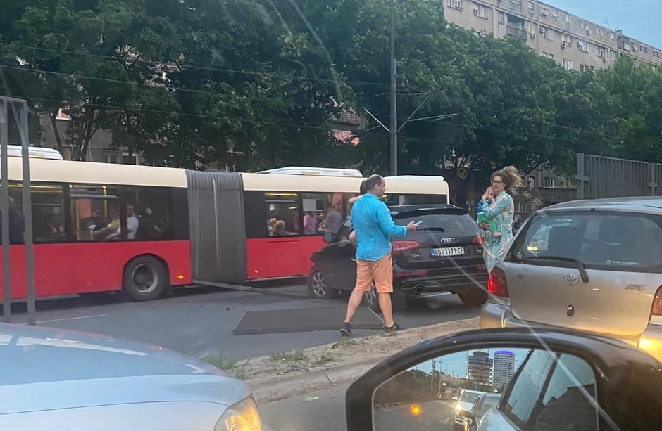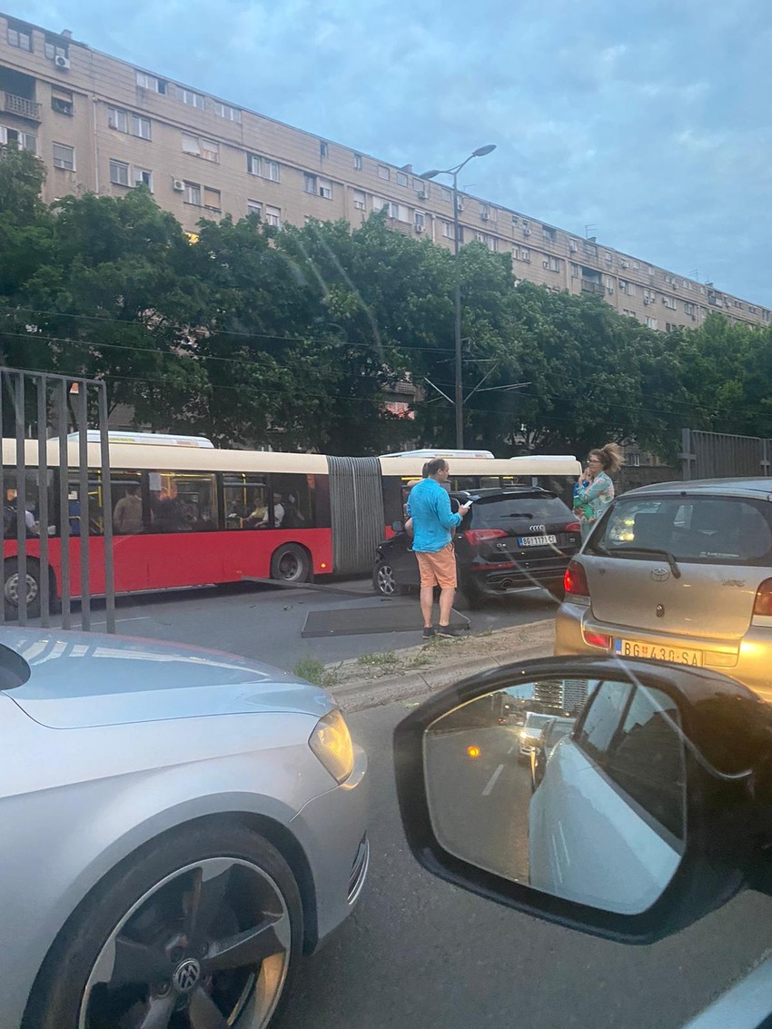 Oko 20 i 15 sati kod Beogradskog sajma dogodila se saobraćajna nezgoda kada je automobil probio zaštitnu ogradu i prešao u suprotnu traku.