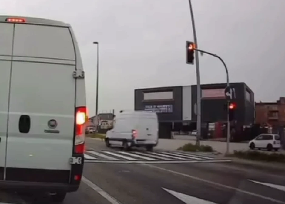 Dok su druga vozila uredno stajala i čekala da se pojavi zeleno svetlo, kombi je samo projurio kroz raskrsnicu, ugrožavajući time i sebe i druge učesnike u saobraćaju.