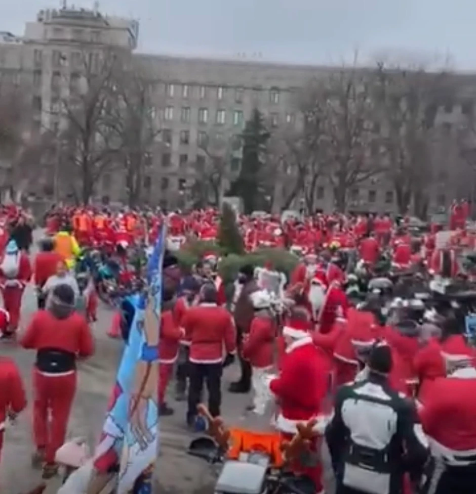 Praznični duh u susret dočeku Nove godine danas je ulepšalo na stotine bajkera ispred Skupštine grada.