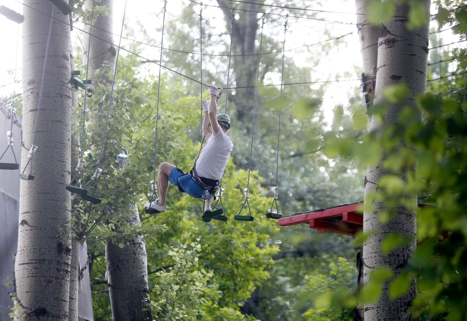 Avantura park na Adi vam nudi priliku da prođete poligon sa čak 19 prepreka, sami ili u pratnji instruktora. Prepreke su prilagođene svima i nije potrebna posebna fizička spremnost kako bi se poligon prošao. Cena jednog prelaska poligona je 1.500 dinara, dok je pratnja instruktora dodatnih 500. Jedini uslov jeste da ste viši od 130cm, odnosno lakši od 130 kilograma.