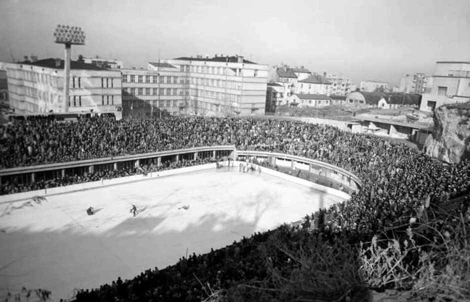 Sportsko - rekreativni centar "Tašmajdan" otvoren je 1954, a ova fotografija punog stadiona nastala je 22. decembra 1955. godine.