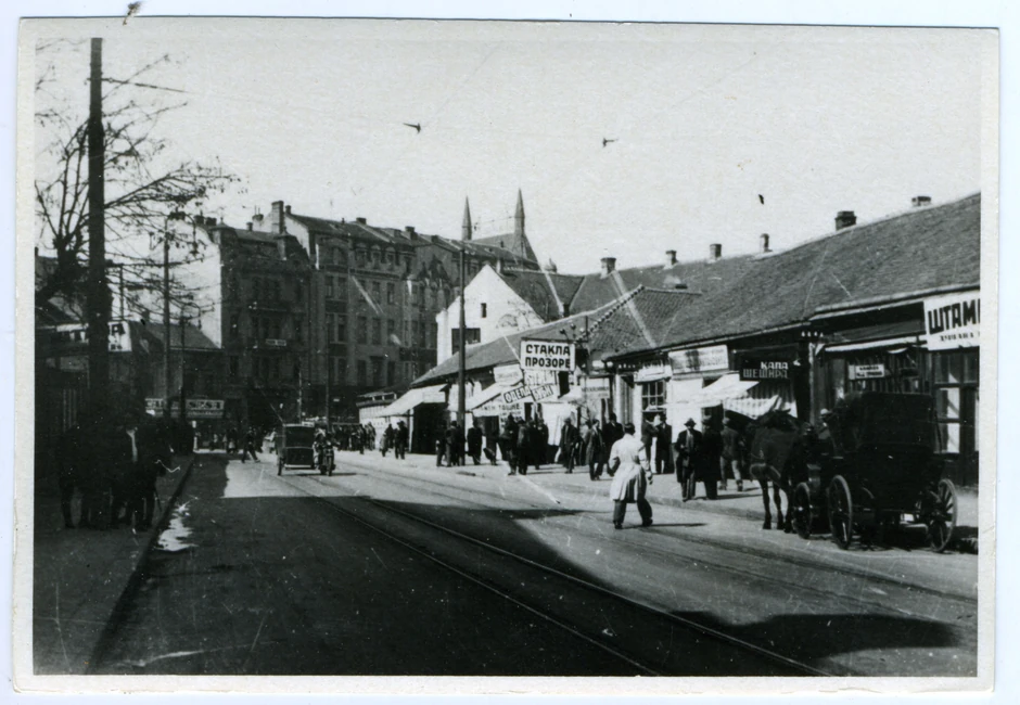 Početak Ulice Kralja Aleksandra: Snimak nastao oko 1930. godine prikazuje početak Ulice Kralja Aleksandra i hotel Moskvu u pozadini. U saobraćaju učestvuju i motocikli i kočije sa konjima.