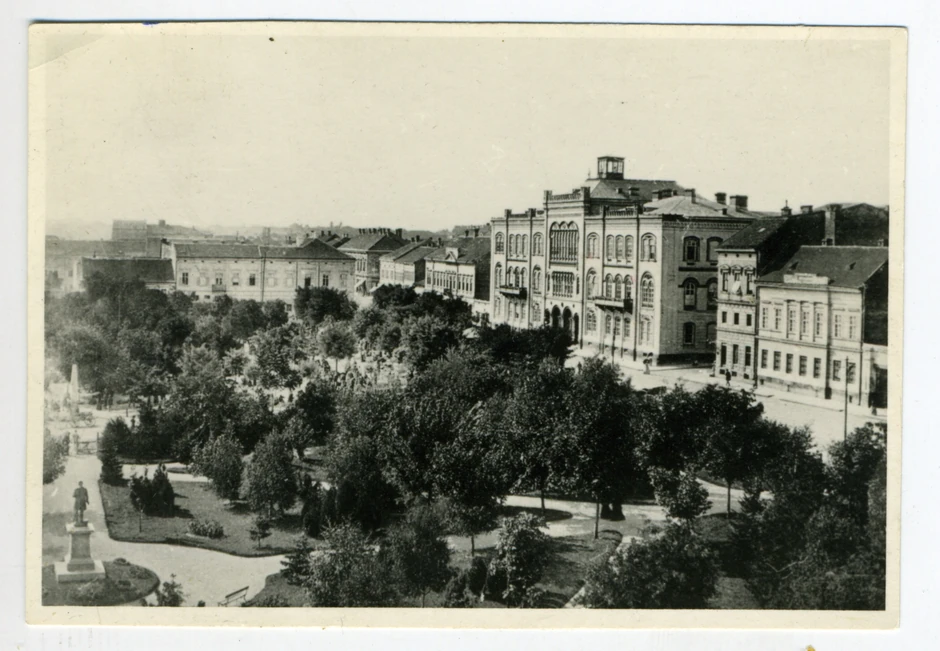 Na fotografiji je Studentski trg sa Kapetan Mišinim zdanjem i Studentskim parkom u kome je spomenik Josifu Pančiću. Iza parka su hoteli Makedonija i Imperijal. Snimak je nastao oko 1930. godine.