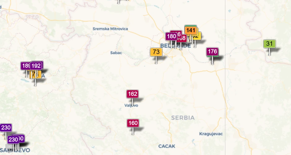 Crvenim alarmom srpsku prestonici označio je i sajt WAQI (World Air Quality Index),koji vazduh u Beogradu opisuje kao nezdrav. Poredeći brojke istaknute na ovom portalu, ubedljivi rekorder u glavnom gradu danas je bila opština Novi Beograd.