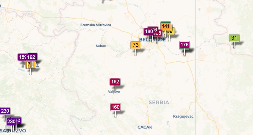 Najlošiji vazduh trenutno udišu Pančevci, budući da se na mernoj stanici "Starčevo" beleži u proseku 115 PM 10 čestica. Za nijansu je bolje na opštini Novi Beograd, sa indeksom zagađenja 110, a ove parametre u stopu prati i opština Stari Grad sa 95 PM 10 čestica, dok je na Mostaru 81.