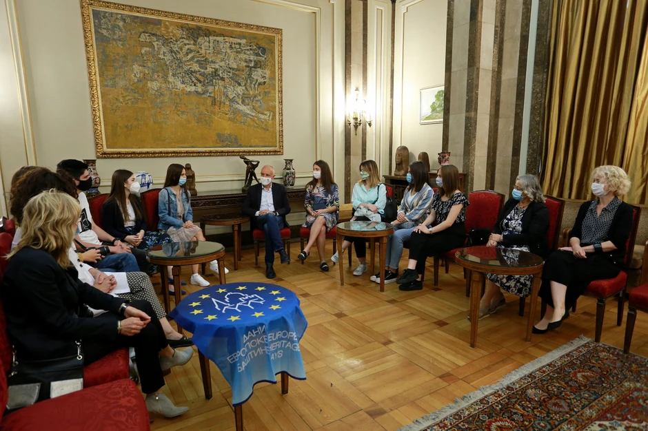 U okviru manifestacije "Dani evropske baštine", gradonačelnik Beograda prof. dr Zoran Radojičić ugostio je danas u Starom dvoru đake Četrnaeste beogradske gimanzije, kreatore sajta koji promoviše kulturno-umetničko nasleđe Beograda.